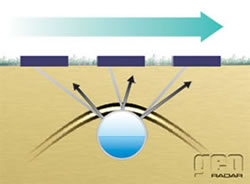 Fala elektromagnetyczna rozchodzi się w gruncie w formie stożka (jego kształt zależy od właściwości badanego materiału), dlatego georadar odbiera odbite sygnały już z pewnej odległości. Czas potrzebny na przebycie drogi do obiektu i z powrotem zmienia się w zależności od odległości anteny od obiektu. Najkrótszy jest w przypadku gdy antena znajduje się tuż nad badanym obiektem. Zatem przekrój np. rury georadar pokaże na odczycie jako hiperbolę. Znając współczynnik przenikalności badanego ośrodka (prędkość rozchodzenia się fali elektromagnetycznej w danym ośrodku) georadar pozwala na dokładne określenie głębokości obiektów lub warstw.