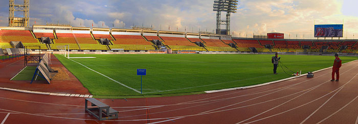 Pełnowymiarowy stadion futbolowy. Ponad 30.000m rurek grzewczych. Rurki są w niewielkiej odległości od siebie - 25cm. Zastosowano dokładne prowadzenie laserowe minimalizujące możliwość nieprawidłowgo prowadzenia anten. Wykonano 364 profili z rozstawem 30cm pokrywając całość stadionu o powierzchni ponad 7700 mkw.